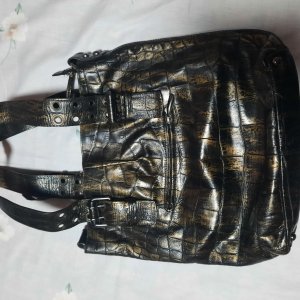 Geanta din piele marca Francesco Biasia, neagra cu insertii aurii,, buzunar interior cu fermoar, doua buzunare telefon, buzunar exterior cu fermoar, barete reglabile, detasabile, dimensiuni 35 x33 cm. was last modified: ianuarie 19th, 2026