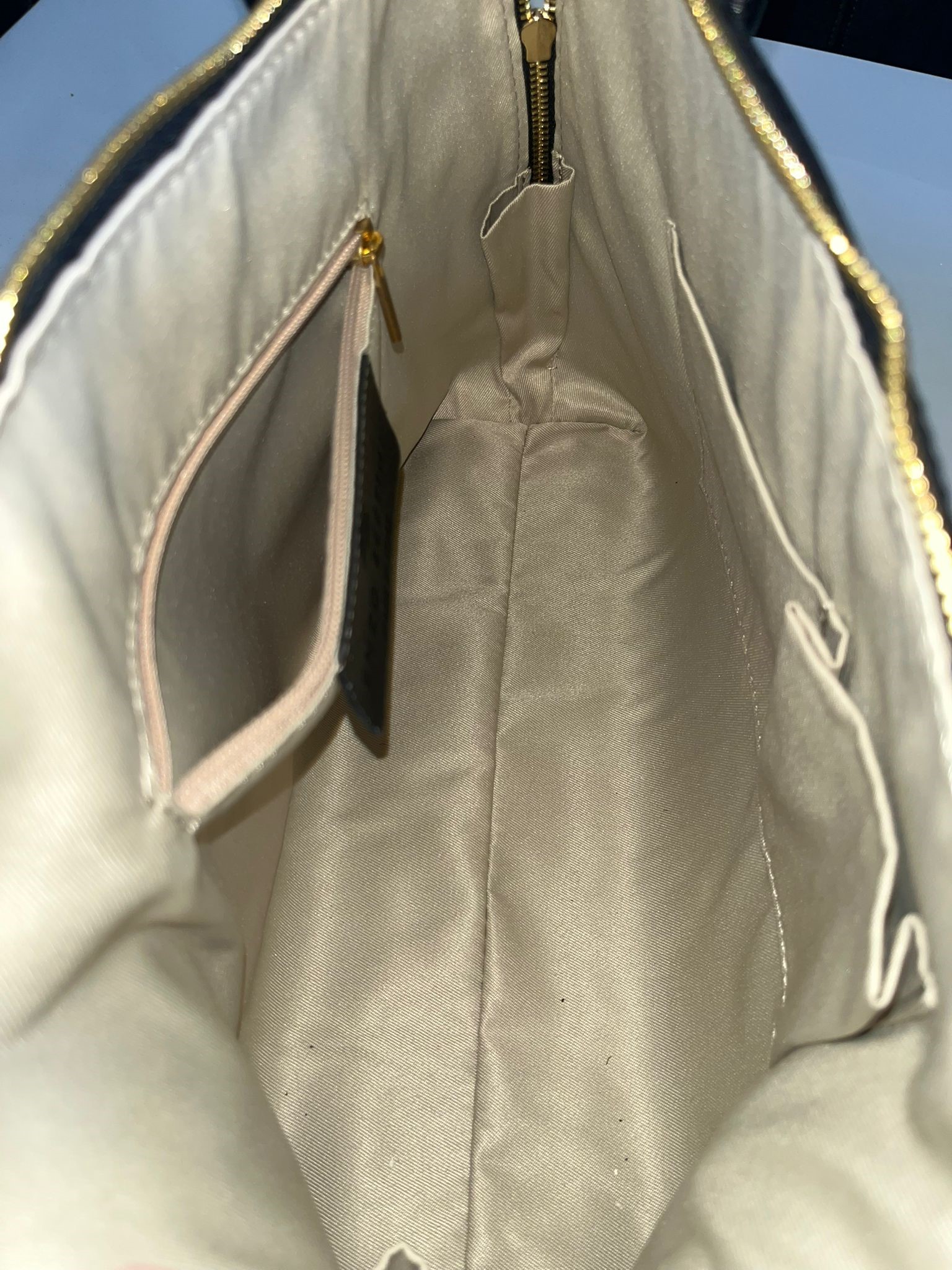 Geanta Moschino Love, neagră cu detalii aurii. Primită cadou noua, am purtat-o de 2 ori. Este ca noua, nu are nici un defect. Are și săculet. was last modified: iunie 19th, 2020