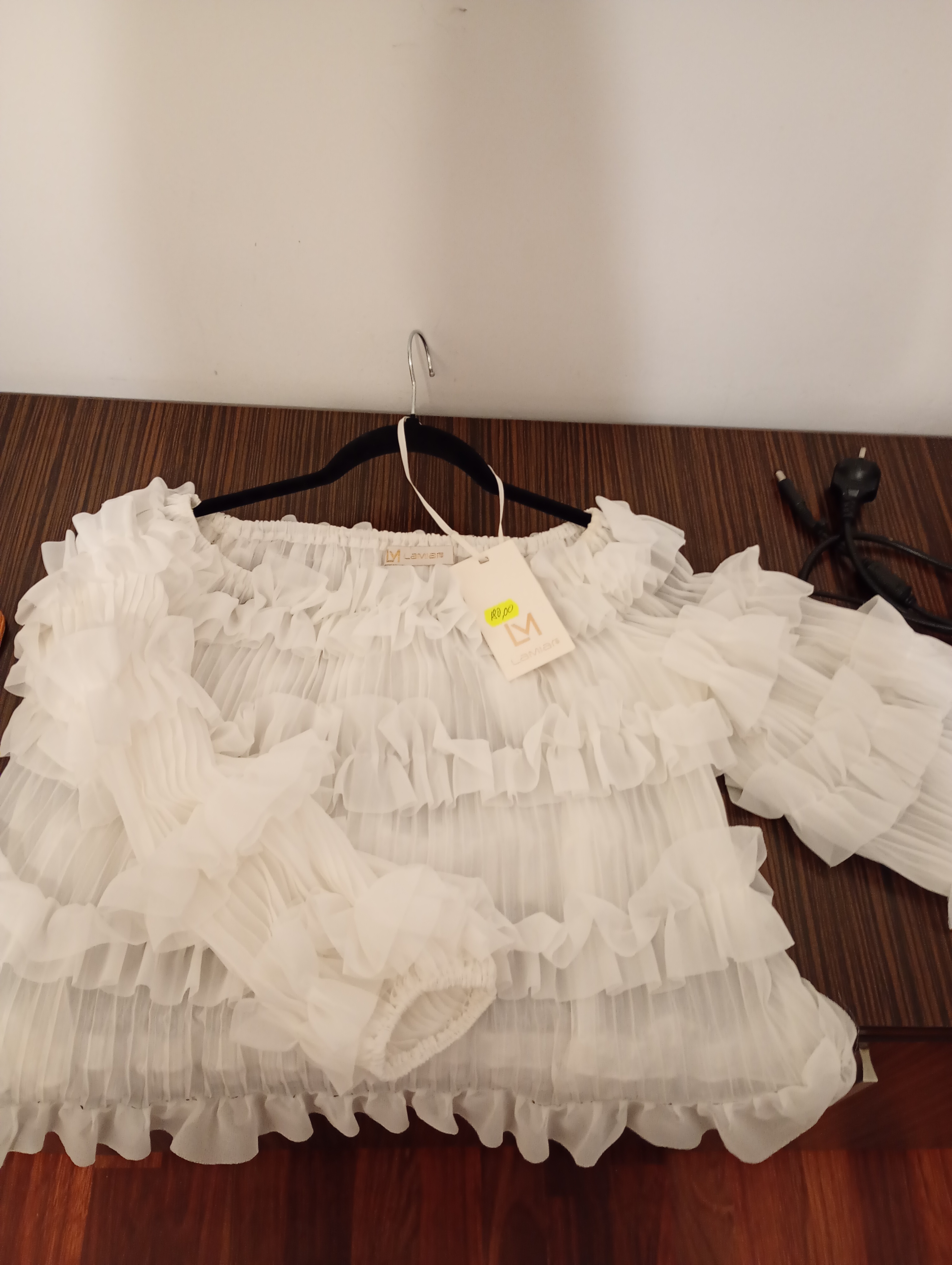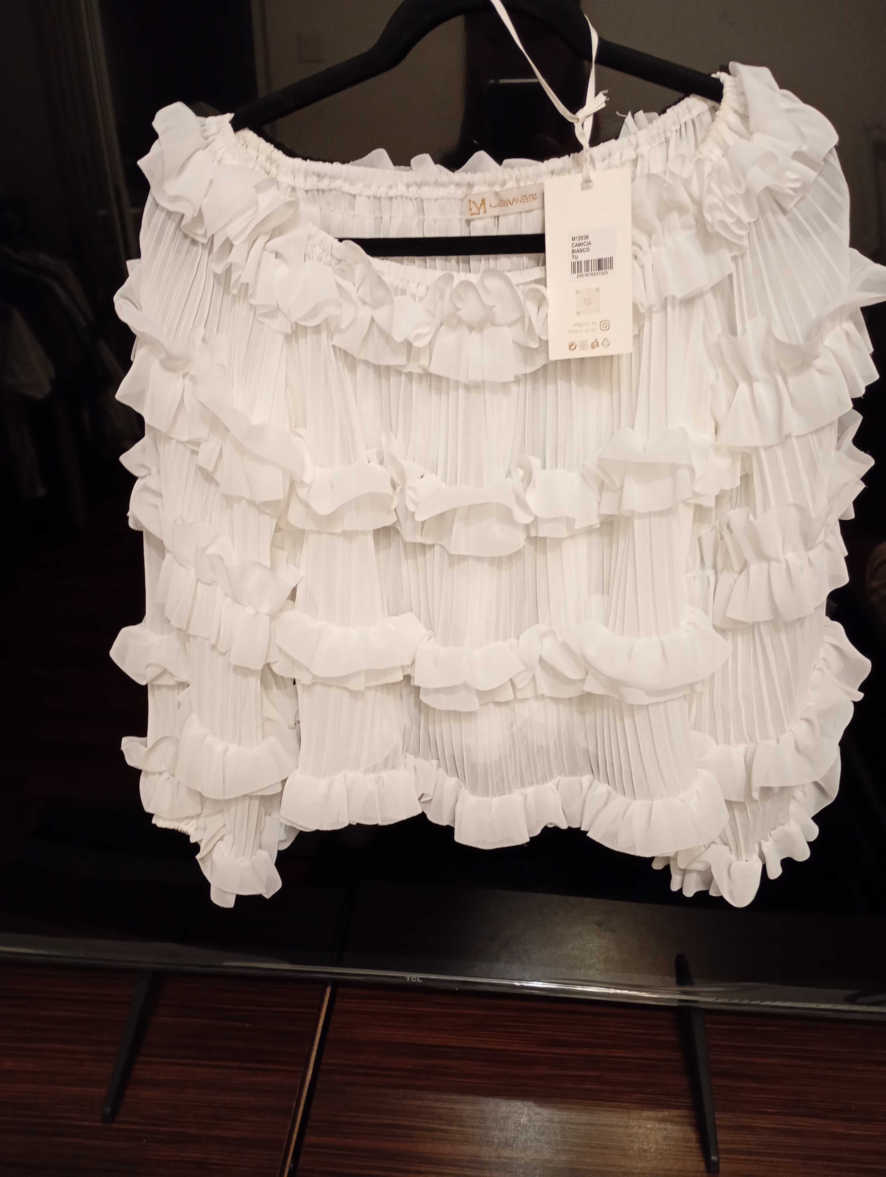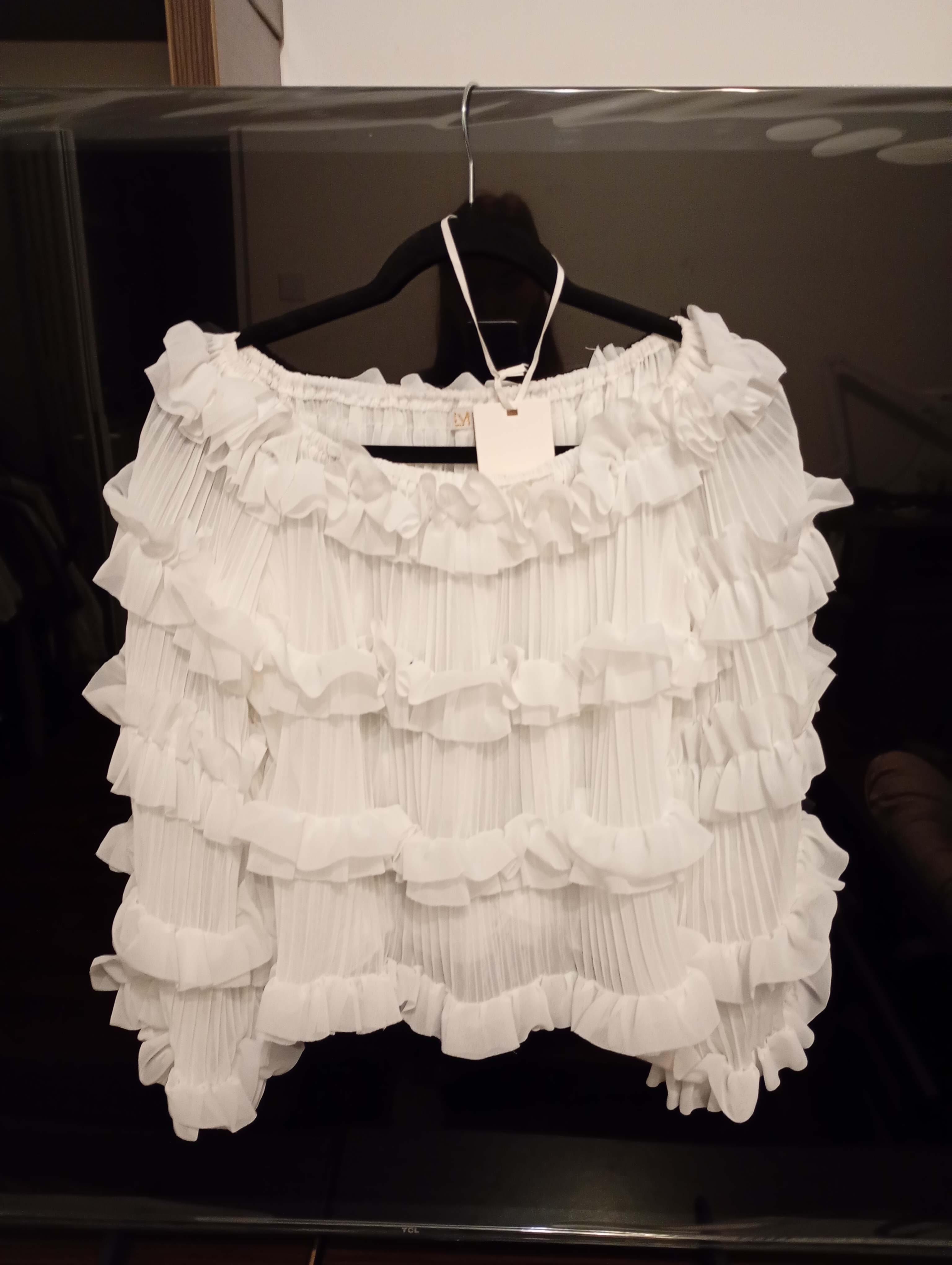 Bluza semitransparenta cu volane, oarguta, se poarta cu umerii goi, Mărimea M, L