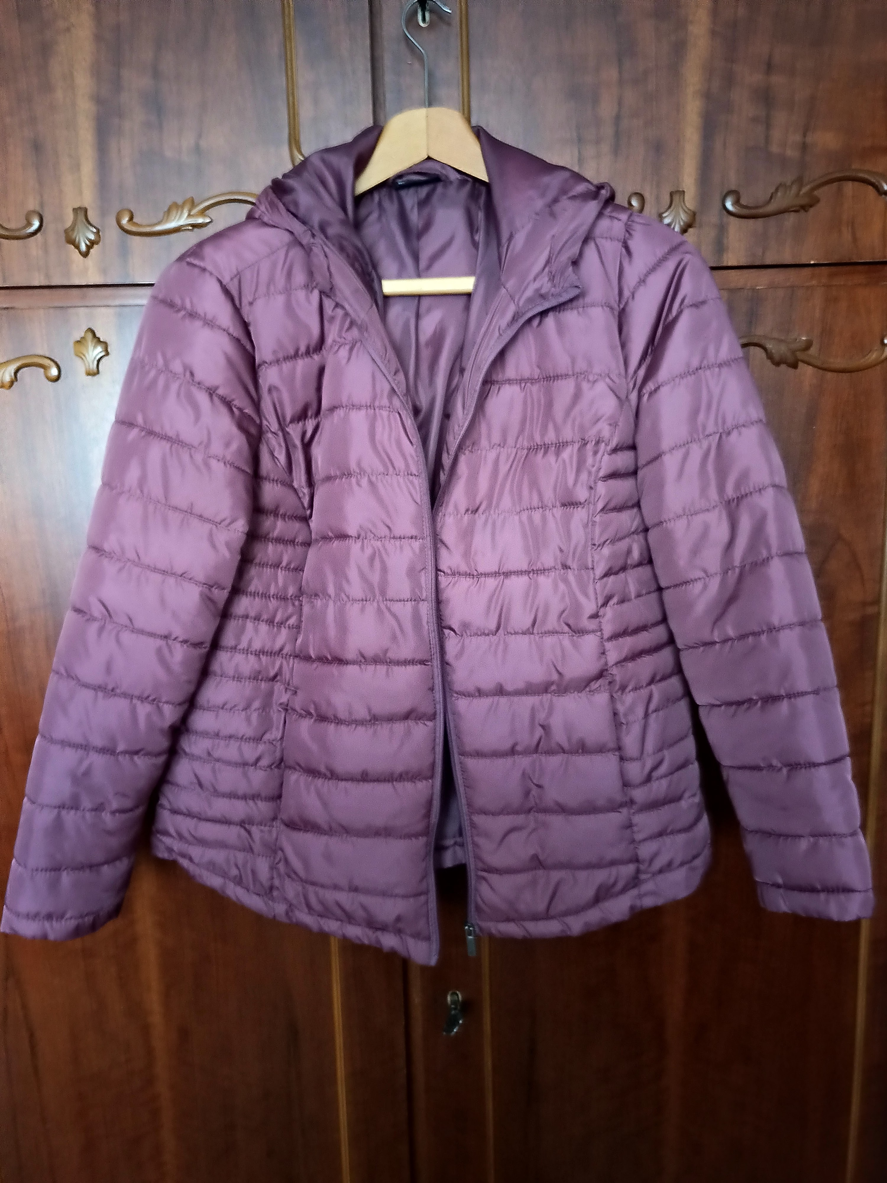 Jachetă matlasată, grena, îmbrăcată de câteva ori, mărimea 44, 100 cm la subraț.